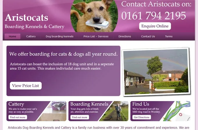 Aristocats Cattery, a family-run establishment with over 25 years of dedicated experience, is located in Walkden and Swinton, near Worsley in Manchester. This facility features 18 heated dog units that provide a cozy environment throughout the colder months. Each dog enjoys individual walks on a lead every day, ensuring they receive fresh air and personal attention. Guests can opt for an additional afternoon walk as well. The kennels are thoroughly cleaned and disinfected between stays, with food provided, though owners can bring their dog's preferred diet. The caring staff is equipped to handle special needs and administer medication at no added cost. Baskets and bowls are supplied for every pet's comfort during their stay.