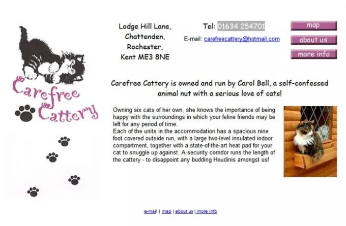 Carefree Cattery, located in Chattenden near Rochester, is a charming cattery operated by a passionate cat lover who has five cats of her own. Each individual cat unit features a spacious nine-foot covered outdoor run and a generous two-level insulated indoor area. To ensure warmth and comfort, the cattery provides advanced heat pads. Security is also a priority, with a dedicated corridor designed to accommodate any adventurous escape artists.