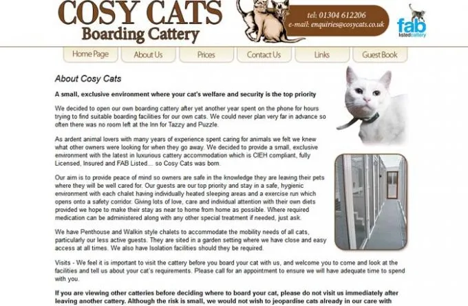 Cosy Cats Boarding Cattery, situated in Sandwich, provides a comfortable stay in specially designed chalets featuring individually heated sleeping areas. Each cat enjoys access to their own exercise runs that lead to a secure corridor. The facility also offers a local collection and delivery service. Various chalet options are available, including raised penthouse and ground-level sleeping areas to accommodate different preferences.