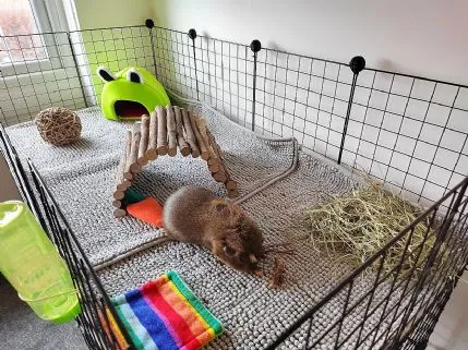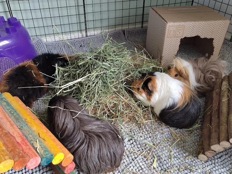 Donut Lips Small Pet Boarding offers a cozy and well-organized indoor boarding facility in Coatbridge, run by experienced pet owners Nicole and MJ, who share their home with five guinea pigs. The accommodation includes eight spacious 4x2 c&c cages, each suitable for up to three guinea pigs, with options for larger groups to ensure every pet has ample space. Each guest enjoys individual free-range time outside their enclosure for exercise and socialization. Should any health issues arise, the facility can promptly take pets to Ark Vets in Coatbridge for care. Additionally, they are happy to administer any vet-prescribed medication during the stay. Grooming services, including claw clipping, are also available to keep pets looking their best.