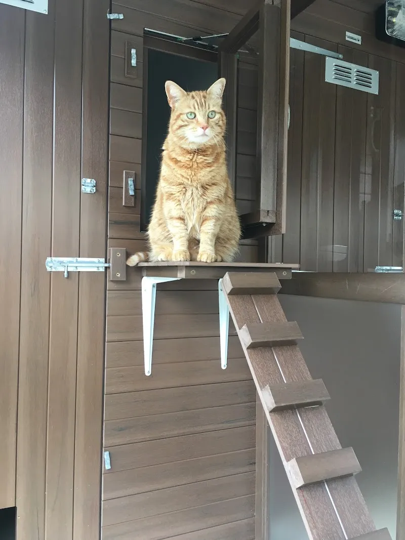 Puss in Rhoose is a charming, family-run boarding cattery located in the heart of Rhoose. This small establishment allows for personalized care and attention for each cat, with services tailored to meet individual needs. The pens are constructed from synthetic wood, ensuring a hygienic and easy-to-maintain environment. Each unit features a secured run and a fully insulated sleeping area equipped with its own light, heater, and thermostat. Heating is activated when temperatures drop below 18°C. Cats are treated to warm bedding, toys, and scratching boards, with the option for owners to bring familiar items to help their pets settle in. Additionally, the pens are designed with ladders and shelves for climbing and resting, and are regularly stocked with various toys and play items to keep the cats entertained. The facility prioritizes hygiene, with daily checks and thorough cleaning of the accommodations.